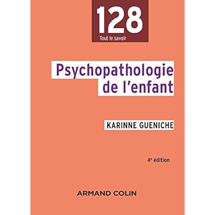La psychopathologie de l’enfant a pour objet d’étude les formes spécifiques que revêt la souffrance psychique de l’enfant, à travers une symptomatologie très variée, à la lumière de ses interactions avec son environnement et de ses capacités d’évolution. Cet ouvrage propose une synthèse de la psychopathologie infantile (de la naissance à 10-12 ans) selon une triple démarche qui vise à définir, décrire et interpréter. Il retrace les phases essentielles du développement de l’enfant dans ses dimensions motrice, cognitive et affective, et présente les principales catégories de troubles infantiles ainsi que les grands regroupements nosographiques. Issu de l’expérience clinique de l’auteur, l’ouvrage, réactualisé dans cette 4e édition, répond aux besoins de tous ceux qui, dans le cadre de leurs études ou professions, sont concernés par ces troubles spécifiques de l’enfant.Poche=132 pages. Editeur Édition =Armand Colin; 4e édition (13 avril 2016). Collection =128. Langue =Français. ISBN-10=2200613164. ISBN-13=978-2200613167. Dimensions du produit=13 x 0,7 x 18 cm. Moyenne des commentaires client =Soyez la première personne à écrire un commentaire sur cet article. Classement des meilleures ventes d'AmazonEnfantsPsychologieSciences humaines=38.651 en Livres (Voir les 100 premiers en Livres) .zg_hrsr { margin: 0; padding: 0; list-style-type: none; } .zg_hrsr_item { margin: 0 0 0 10px; } .zg_hrsr_rank { display: inline-block; width: 80px; text-align: right; } n°107 dans Livres > Santé, Forme et Diététique > Psychologie et psychanalyse > Psychologie > n°596 dans Livres > Etudes supérieures > Université > n°5631 dans Livres >.